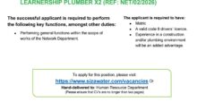 Applications for the SABN (South African Bank Note) Job Vacancy as Cleaner must be submitted before the closing date on 26 May 2022.